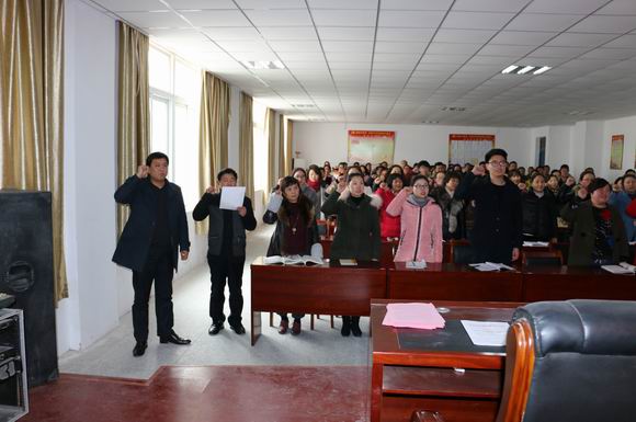 副书记孙克银同志首先传达学习了《2017年宿城区中小学师德师风建设活动实施方案》,并带领全体教师进行庄严宣誓,大会与全体教师签订了师德师风承诺书。