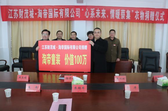 1月27日,上级领导及爱心企业代表汇聚365bet首页,举行“江苏财贸城.淘帝国际有限公司‘心系未来,情暖蔡集’”衣物捐赠仪式。